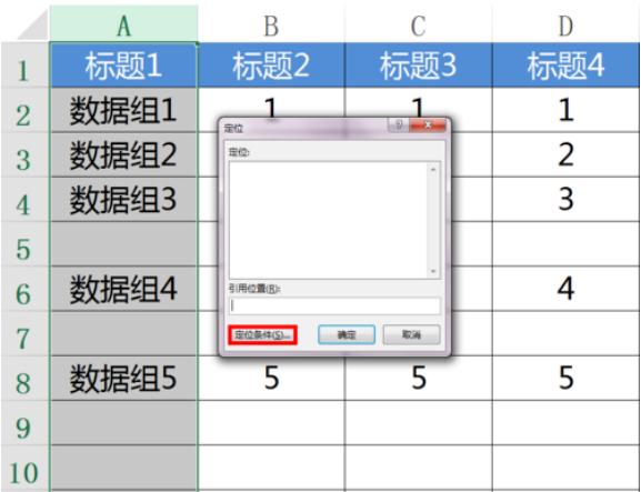 2.按F5調出定位對話(huà)框,左鍵單擊選擇"定位條件"。