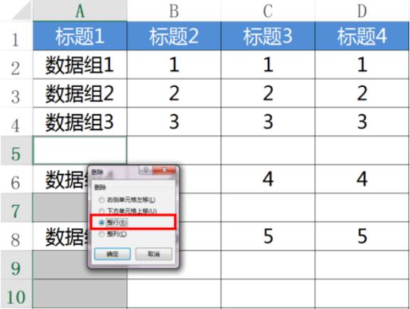 在刪除選項中,點(diǎn)擊選擇刪除"整行",即可完成刪除空白行。