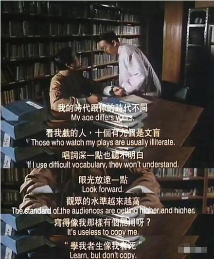 《南海十三郎》里,想來(lái)拜師的唐滌生模仿十三郎的詞句,被十三郎呵斥,說(shuō)寫(xiě)得像他沒(méi)有屁用,因為“學(xué)我者生,像我者死。”