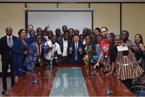 馬云在加納和非洲創(chuàng )業(yè)者在一起