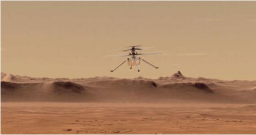 在火星上飛行面臨著(zhù)諸多挑戰,因為那里沒(méi)有太多的空氣可以產(chǎn)生足夠升力。在火星表面,大氣層的密度只有地球的1/100,但較小的重力(約為地球1/3)有助于升空。不過(guò),從火星表面起飛相當于在地球上 30480 米的高度飛行。地球上從來(lái)沒(méi)有直升機飛得那么高,這個(gè)海拔也是噴氣式客機通常飛行高度的兩倍多。