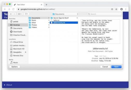 谷歌已經(jīng)向萬(wàn)維網(wǎng)聯(lián)盟(W3C)提交了 Native File System API,允許像照片編輯器、文本編輯器,甚至是集成開(kāi)發(fā)環(huán)境(IDE)這樣的 Web 應用使用平臺的原生文件對話(huà)框來(lái)訪(fǎng)問(wèn)文件。這使得網(wǎng)頁(yè)應用的外觀(guān)和行為像普通應用一樣。