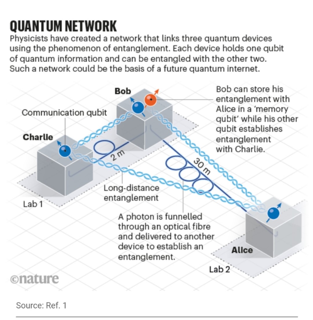 《自然》新聞評價(jià)稱(chēng),代爾夫特理工大學(xué)研究團隊通過(guò)將信息存儲在一個(gè)節點(diǎn)上演示了糾纏交換技術(shù),“這種技術(shù)對于未來(lái)的量子互聯(lián)網(wǎng)來(lái)說(shuō),可能就像路由器對互聯(lián)網(wǎng)一樣重要”。