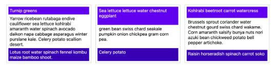 比如下面三個(gè)卡片組件的頁(yè)眉和頁(yè)腳都對齊了,即使每張卡片都有獨立的網(wǎng)格(grid),這是因為每張卡片都是跨越父網(wǎng)格的三行項目,然后使用子網(wǎng)格 Subgrid 將這些行繼承到每個(gè)卡片中。