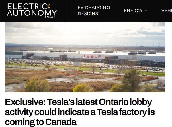 特斯拉開(kāi)始游說(shuō)加拿大 有意在該地區建立新的電動(dòng)汽車(chē)工廠(chǎng) 11:22:00
