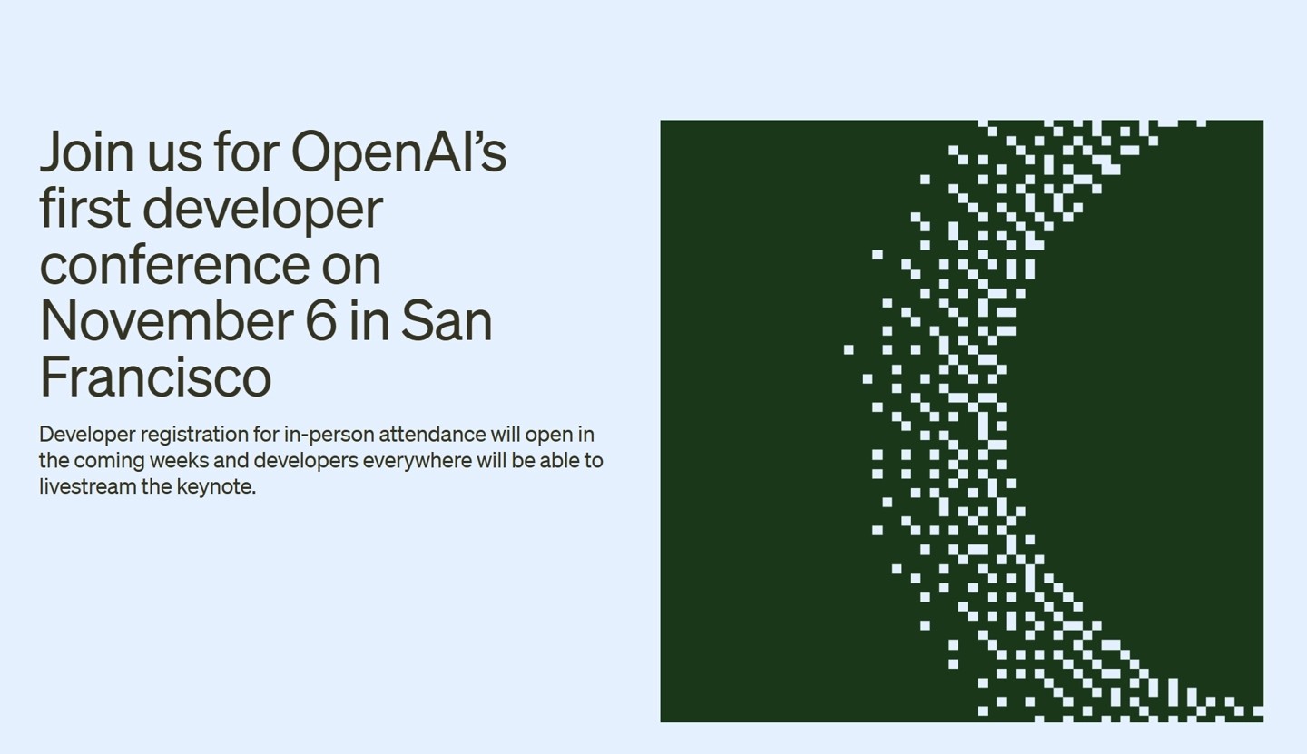 隨著(zhù) AI 大模型的爆火,OpenAI 日前在官網(wǎng)宣布,將于 11 月 6 日在舊金山舉辦首屆開(kāi)發(fā)者大會(huì ) OpenAI DevDay。