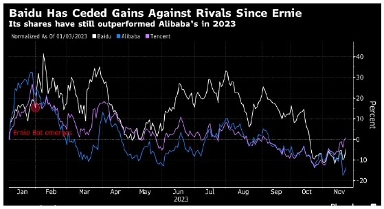 該公司今年交出了中國對于OpenAI的ChatGPT的第一份重要“答卷”,引發(fā)阿里巴巴、騰訊控股等國內同行紛紛參與競爭,展示各自的生成式AI平臺。百度的“文心一言”在發(fā)布后的三個(gè)月內,斬獲7000萬(wàn)用戶(hù),公司宣稱(chēng)其開(kāi)發(fā)的模型在一般能力方面已經(jīng)可以和GPT-4相媲美。