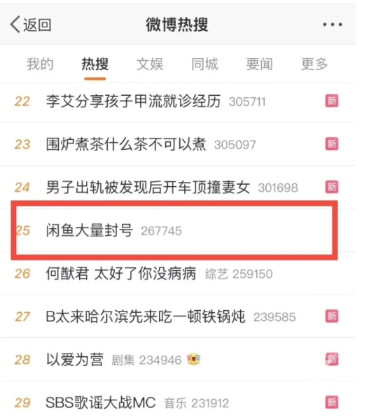 昨日,有網(wǎng)友反映二手交易平臺閑魚(yú)大量封號,隨后這一話(huà)題還登上了熱搜。